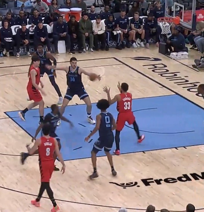 12月8日讯 今日开拓者96-119不敌灰熊,第三节杨瀚森完成了一个漂亮的助攻,让卡马拉轻松扣篮得分,之后美媒“Point Made Basketball”发文谈到了这个处理。